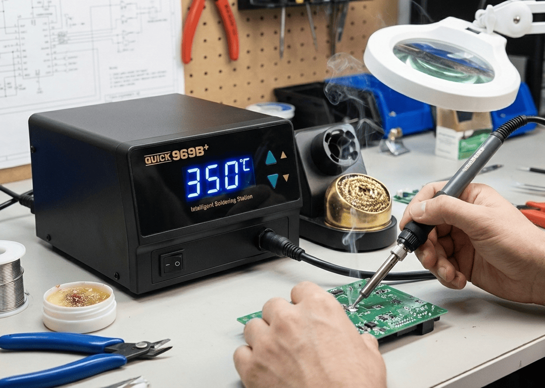 Compared with standalone soldering irons, soldering stations allow temperature adjustment and stable heat retention, making them suitable for repetitive soldering tasks or circuit boards with multiple components.